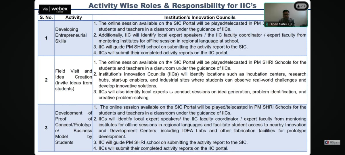 Developing innovarion and enterprenureship by Ministry of education for IIC- 09-062025